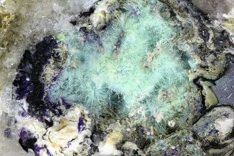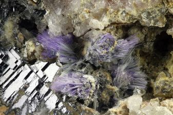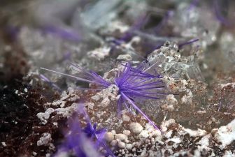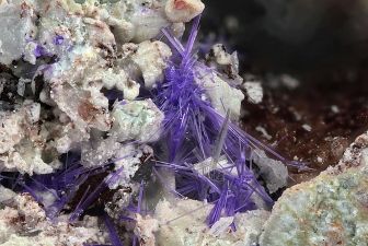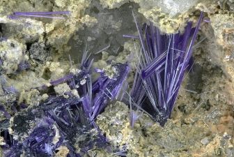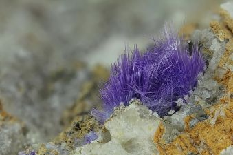 Das auch faserig und verfilzt vorkommende Mineral zeigt eine blass bis intensiv violettene Farbe, was seine Bestimmung erleichtert.