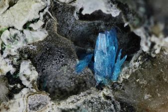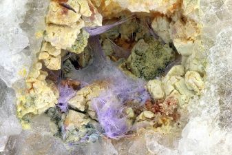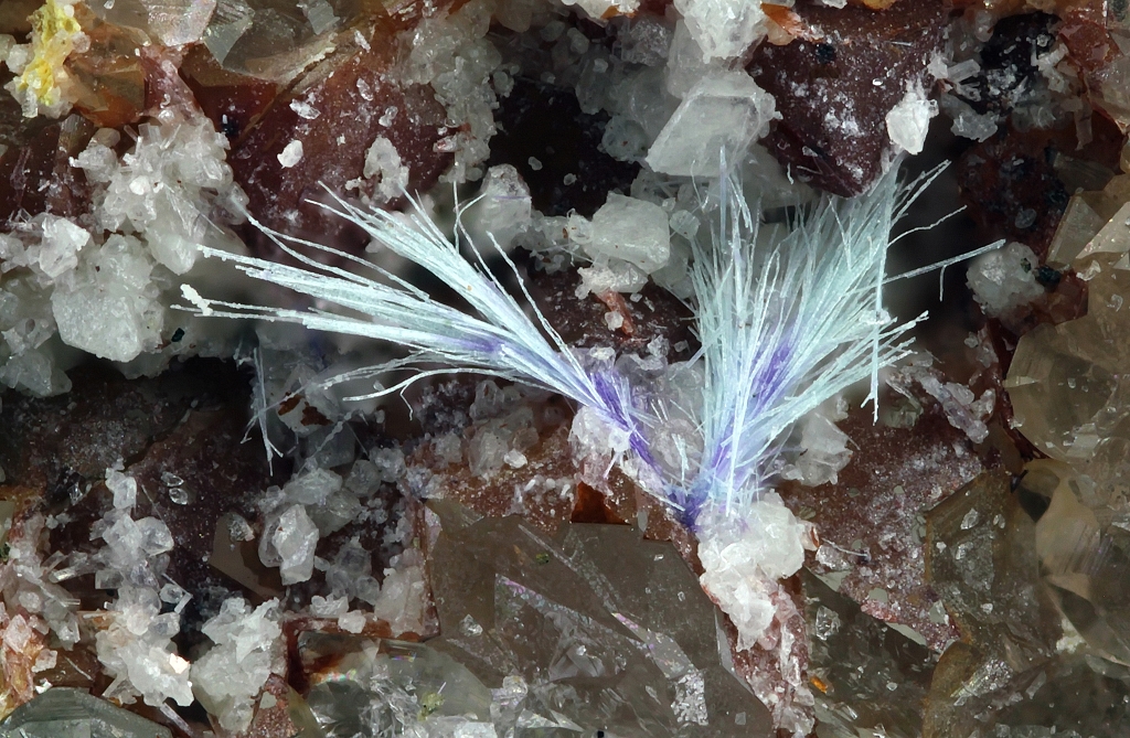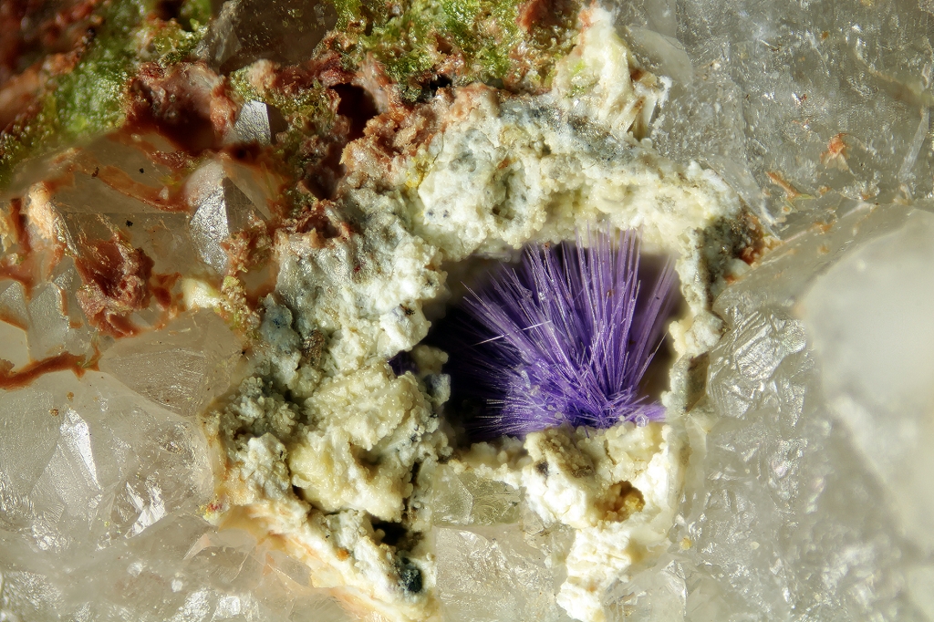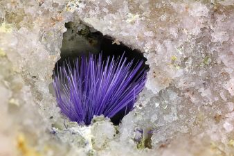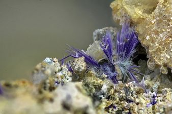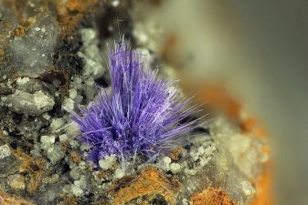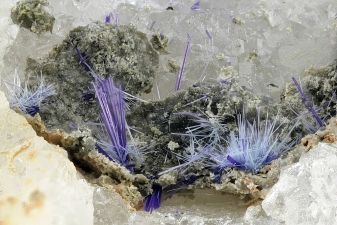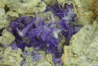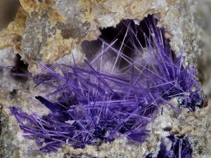Das auch faserig und verfilzt vorkommende Mineral zeigt eine blass bis intensiv violettene Farbe, was seine Bestimmung erleichtert.